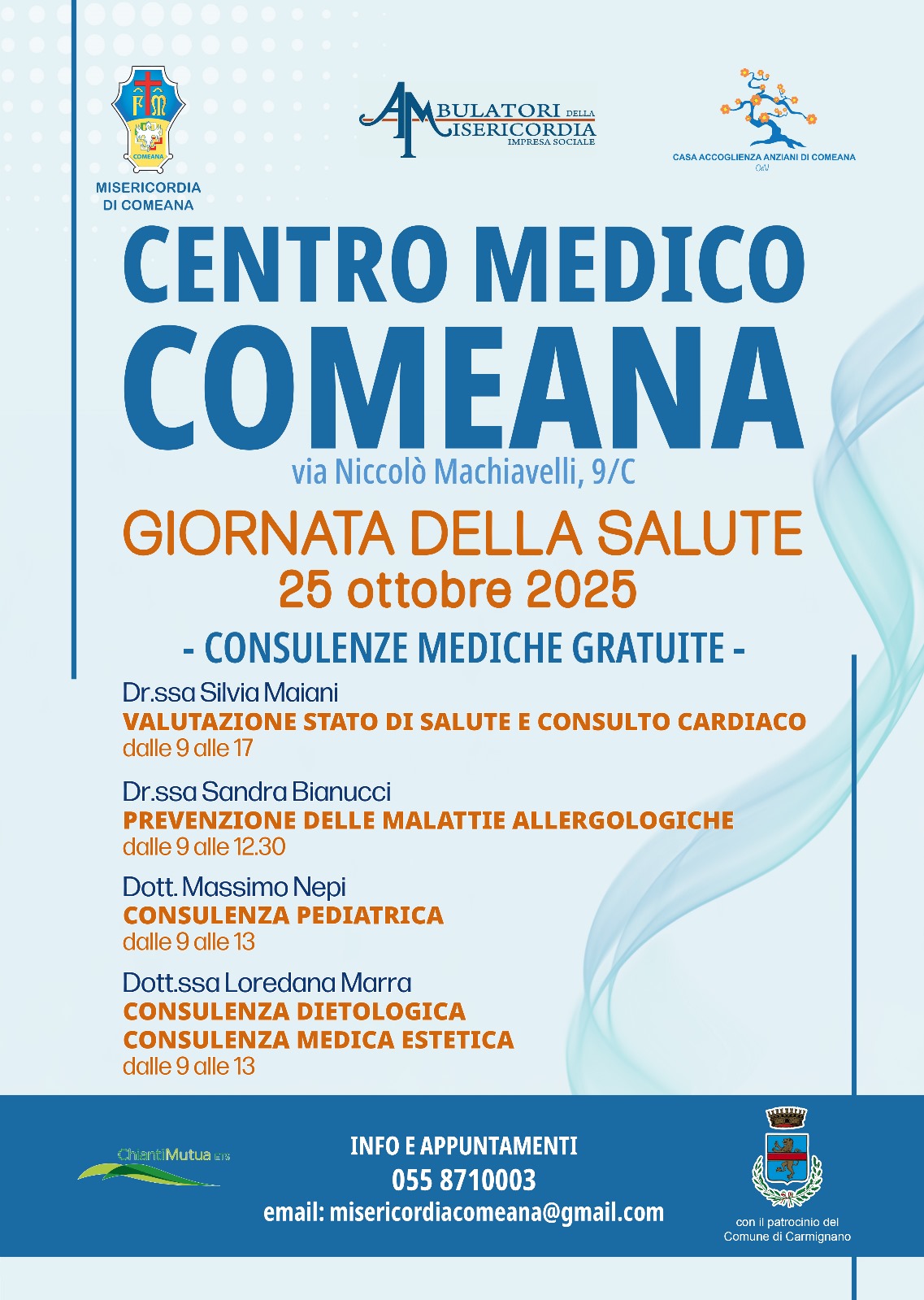 Info e appuntamenti: 055 8710003 oppure mail: misericordiadicomeana@gmail.com