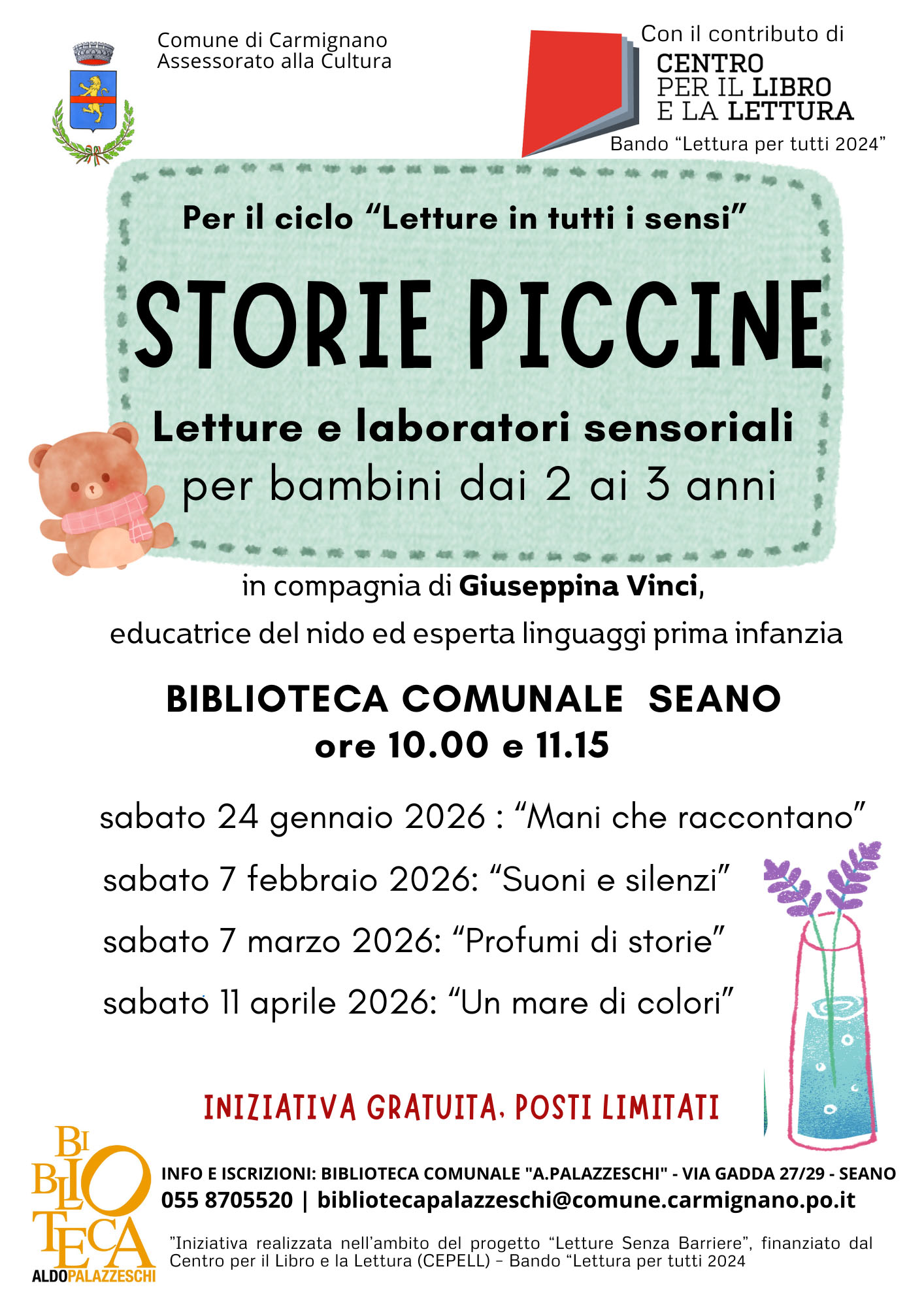Un percorso di letture e laboratori sensoriali pensato per scoprire il piacere delle storie attraverso suoni, colori, profumi e gesti.