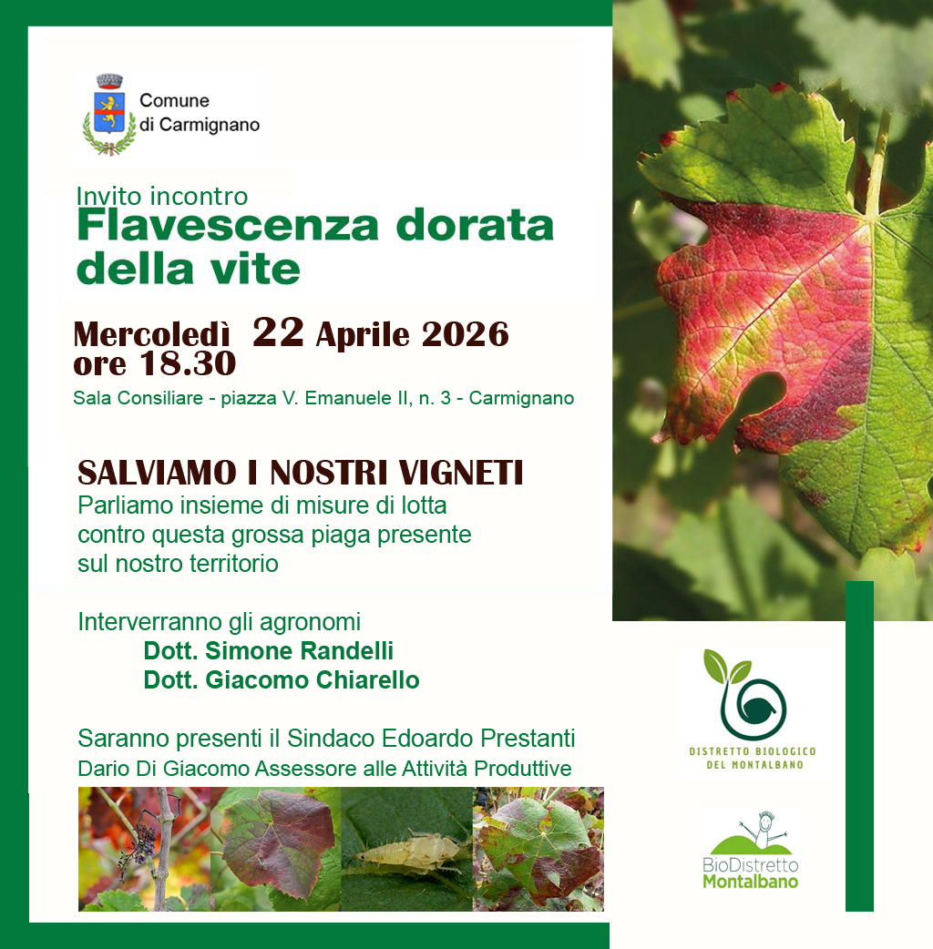 si terrà in sala Consiliare del Comune di Carmignano un incontro informativo sulla Flavescenza dorata della vite.
