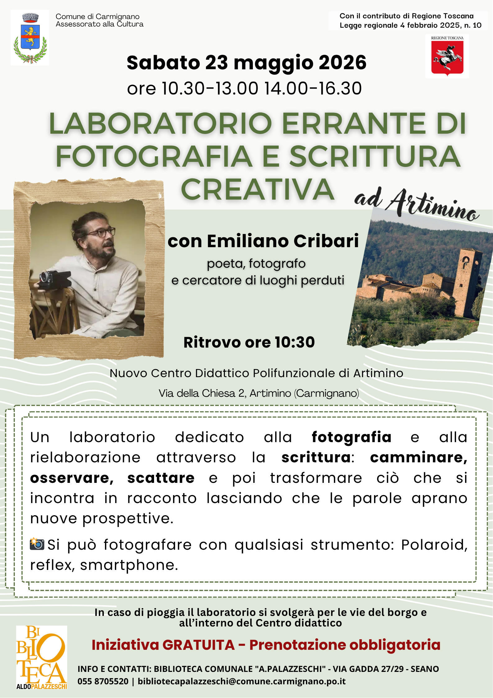Iniziativa realizzata dal Comune di Carmignano - Assessorato alla Cultura, con il contributo della Regione Toscana ai sensi della Legge regionale 4 febbraio 2025, n. 10.