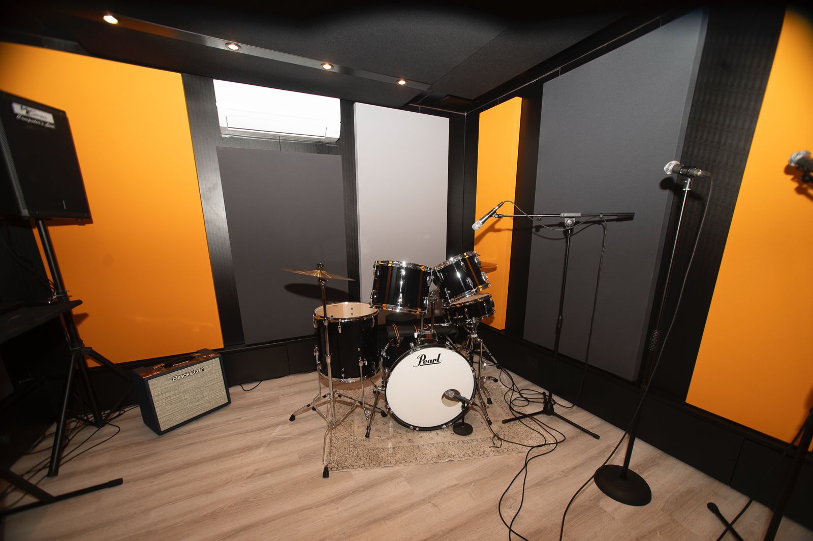 Un ambiente di 15 mq dotato di strumentazione professionale, insonorizzato, trattato acusticamente con pannelli fonoassorbenti atti a garantire un’acustica ottimale, climatizzato e completato da set silenziati di ricambio aria.