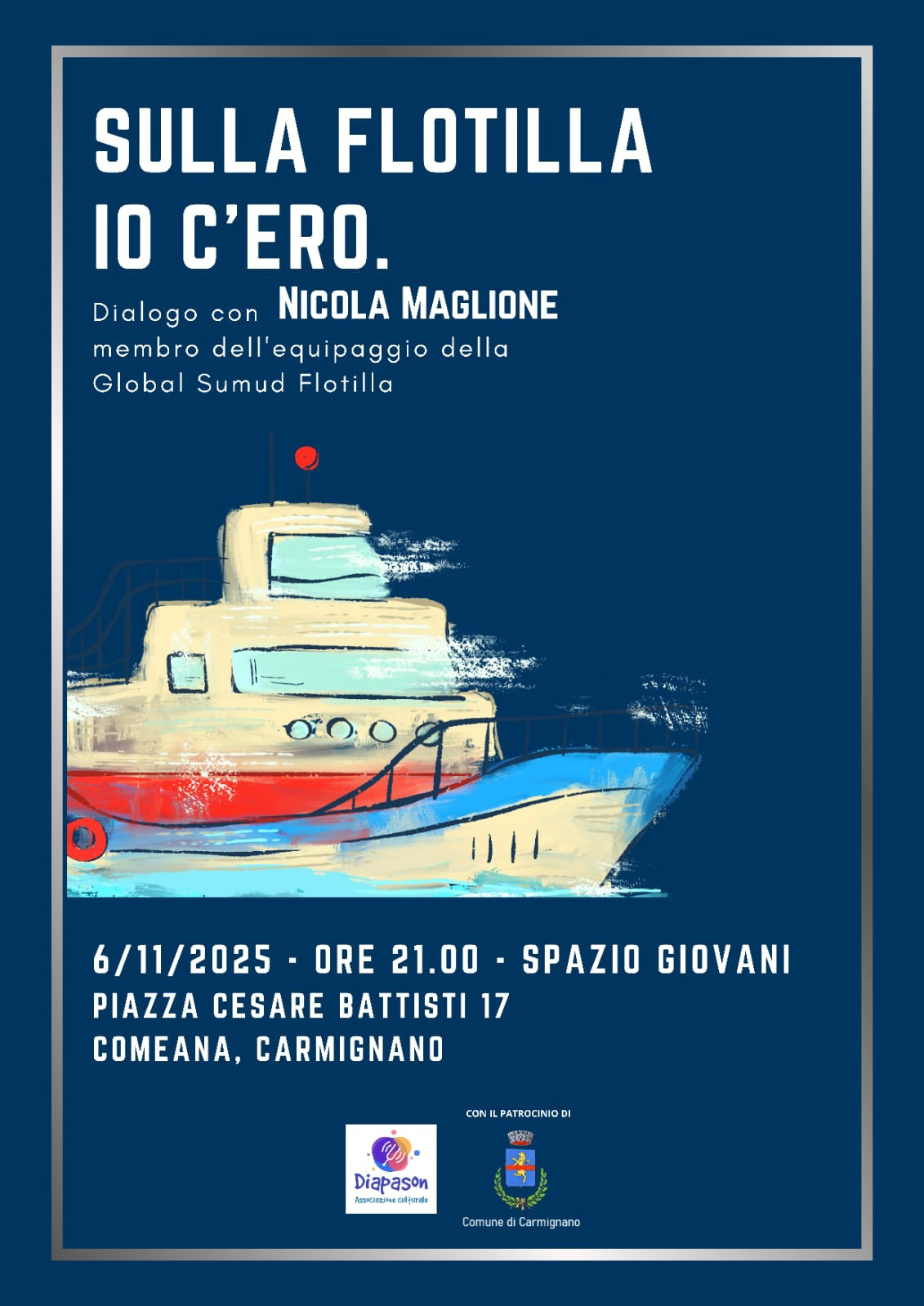 Nicola Maglione, membro dell’equipaggio della Global Sumud Flotilla, incontrerà tutti coloro che vorranno ascoltare la sua vicenda e confrontarsi con un’esperienza che ha lasciato il segno nella storia recente.