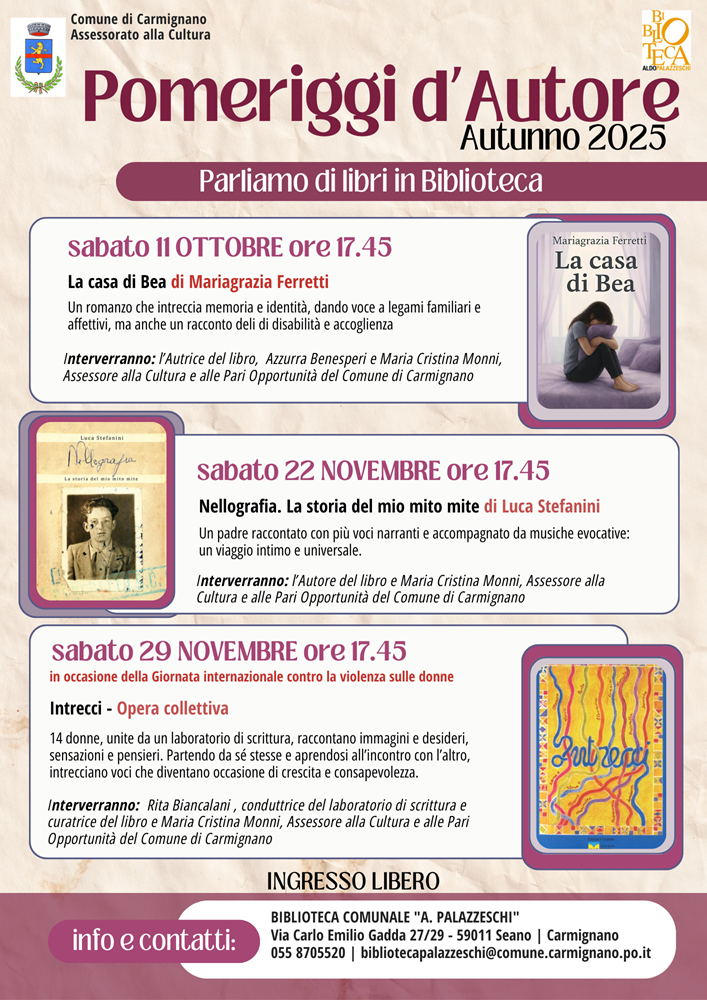 Nella Biblioteca comunale “A.Palazzeschi”, tre nuovi appuntamenti per parlare di libri, memoria, identità e storie di vita, raccontate dagli autori stessi.